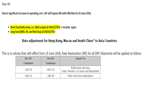 什么是 RR : Rate Restoraton Surcharge 費(fèi)率附加費(fèi)